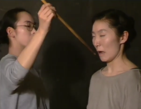 Dans le documentaire Piercing the mask, on assiste à une "entrée" dans le Butō. Une femme vient avec un bâton frapper le front d'une danseuse.
