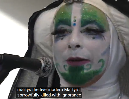 Entre les fleurs et la foudre, en 1979 à San Francisco, les Sœurs de la perpétuelle indulgence forment leur "couvent". Encore en activité, ces drag au costume de bonnes sœurs sont connues pour aller prêcher la bonne parole du safe sex dans les lieux de cruising et pour leur combat contre la politique de Reagan durant les années sida.